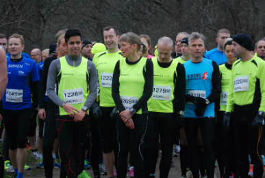 Løbetræningen startede i dag med 195 deltagere fordelt på 8 tempogrupper der løb turen rundt om Søndersø. Flot løbevejr med frost og et meget tyndt lag sne.
